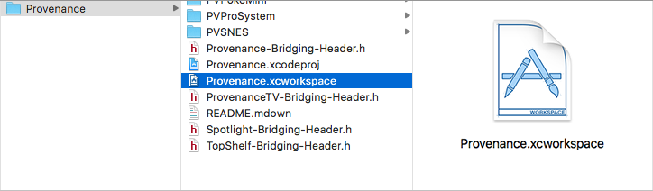 Open the Provenance Xcode workspace: