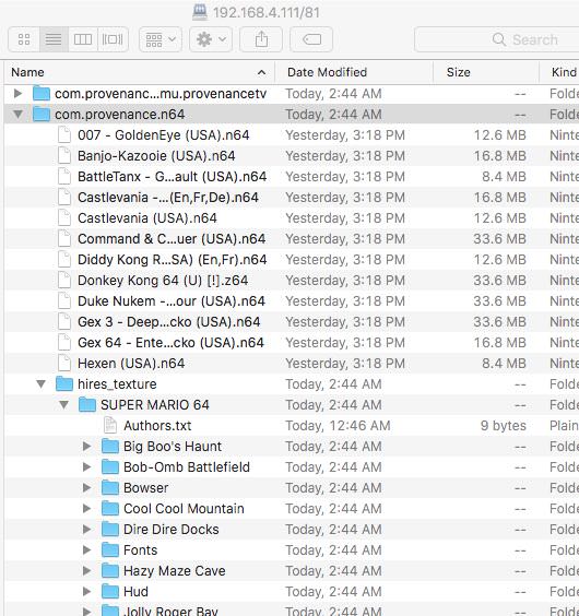 The option is enabled by default since if it doesn't find textures for the current ROM nothing happens. To use hi-res texture packs you need to copy them to the directory com.provenance.n64/hires_texture/{ROM NAME} The ROM NAME isn't the file name, but instead the identifier for the ROM in the header of the ROM file. If you don't know what it is, you can view the console output at load where it says something like, Mupen (3): Name: SUPER MARIO 64 So in this example, if I wanted to load hi res textures for Mario 64 I would put them in, com.provenance.n64/hires_texture/SUPER MARIO 64